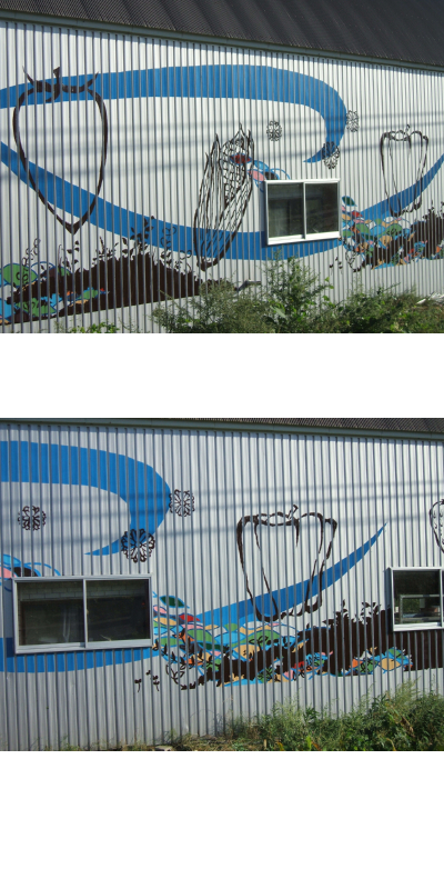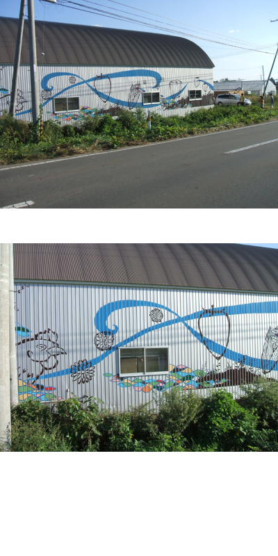 それはそうと、9月、北海道某所にて倉庫の壁に絵を描いてきました。